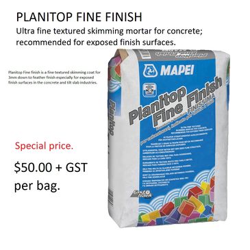is a fine textured skimming coat for 3mm down to feather finish especially for exposed finish surfaces in the concrete and tilt slab industries